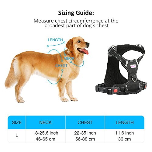 VERY EASY TO WEAR PUT ON The chest of our Holuck dog harness can be easy adjusted,which is very easy to wear and put on. Durable shell has a lined and padded interior for added comfort and make the dog harness more attractive and durable. ENJOY A HAPPY WALKING TIME WITH YOUR LOVELY PET The reflective dog harness has easy-grab handle to help you to control excited pets. Locking release buckle free conversion lock and open, no longer afraid of the dog accidentally get rid of. Heavy duty metal D ring can be lead and reflective strips both on the webbing and on the front chest strap to protect your dogs during night time. EXCELLENT QUALITY FOR LONG LASTING WASHABLE Very easy to apply, flexible material can make your dog to move its body parts freely. All the dog vest harness made of highest quality nylon outside,nickel-plated hardware,thick material. Surface in high durable nylon material,long lasting and washable,thick material with soft padding underneath ,breathable, skin-friendly, wear sweat. Specification Color: Black Size L: NECK 18-25.6 inch, CHEST 22-35 inch,LENGTH 11.6 inch. Material: Nylon Reflective Fabric, Environment Sponge, POM Plastic Buckle Package Include 1 x Holuck Dog Vest Harness 0 |