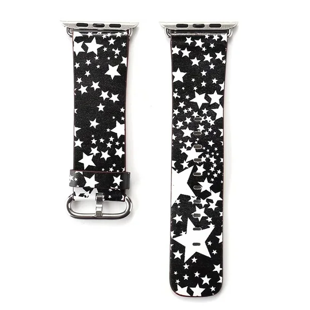 | [해외] PU 가죽 시계 밴드 스트랩 시계 38 미리메터 시리즈 1/2 블랙 화이트 스타 여성의 손목 팔찌 교체 I224. |