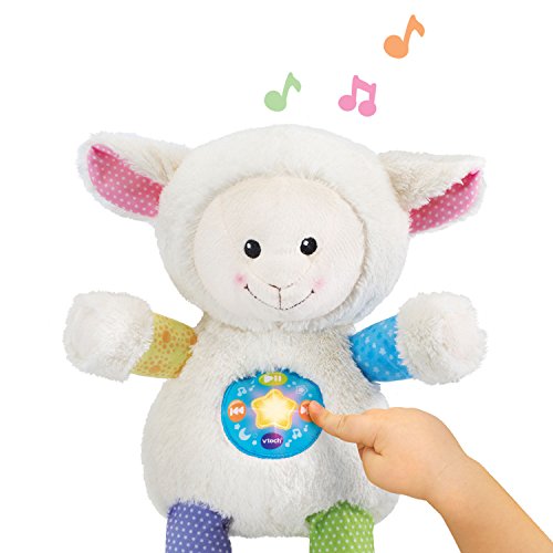 -. Feature : The Snuggle and Sleep Musical Sheep is a cuddly friend, storyteller and MP3 player; the sheep can also detect your little one's cry and will play soothing melodies to help them fall back to sleep / Plush sheep comes with 40 melodies and 5 sing-along songs and can be customized with your child's name, favorite stories and music from VTech's Learning Lodge / Add your own music using an SD card (not included) and the sheep becomes an adorable MP3 player; light-up star flashes with the music / Parental controls let you set a timer for 15, 30 or 60 minutes, adjust the volume and navigate the music; electronics are removable for hand washing / Requires 3 AA batteries (batteries included for demo purposes only; new batteries recommended for regular use); intended for ages birth and up