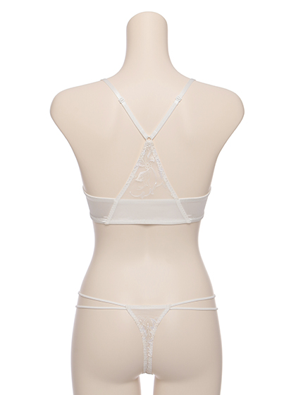 フロントホックなので、バックスタイルの美しい柄と透け感を満喫できる。