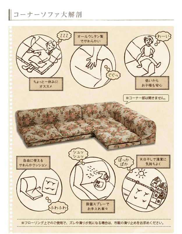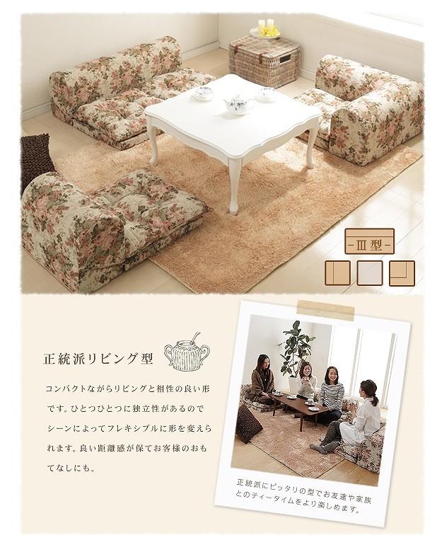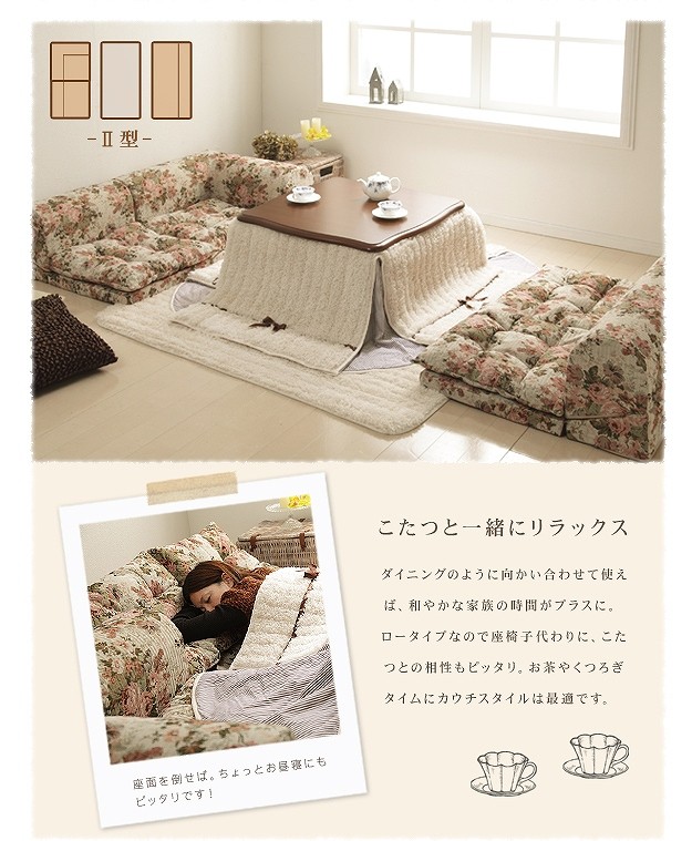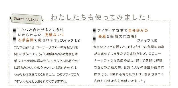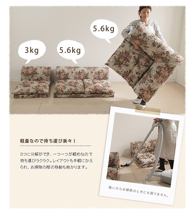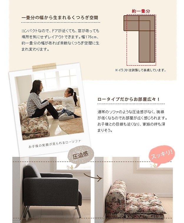 商品について:軽量でコンパクトなセパレートタイプのソファですので形も使い方も自由自在に楽しめます♪安心の日本製。ロータイプなので圧迫感がなくお部屋広々。床生活にオススメです☆