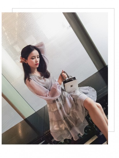透け感のあるワンピースで、イベントやデートなど多くのシーンでお楽しみいただけます。
