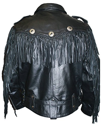 Coolhides Men's Cowboy Fringed and Beaded Leather Jacket