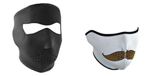-. Feature : This Product is a 'Bundle' of 2 Neoprene Face Mask Items identified as a 'Solid Black' and a 'Mustache' / The First Facemask Item is the ZanHeadgear 'Solid Black', Child / Kid Sized, Full Face Neoprene Face Masks / The Second Facemask Item is the ZanHeadgear 'Mustache' Half Face Neoprene Face Mask / Face Masks / Ski Mask Items are made of Durable, Naturally Warm & Water Resistant Neoprene Face Mask Material / Face Mask Sizes are adjustable, by up to 2 inches, using the Hook & Loop closure, located at the back of the head
