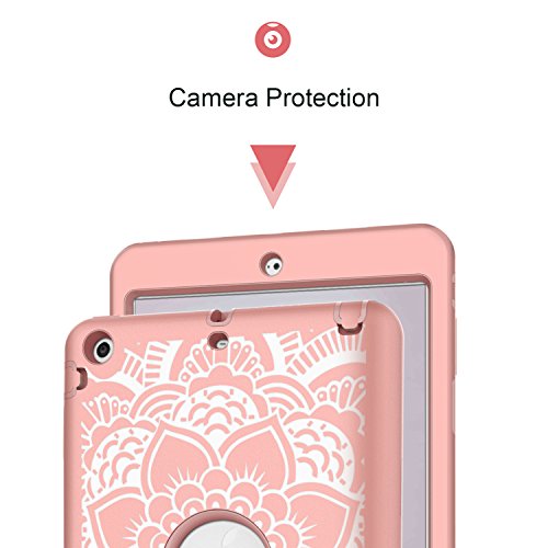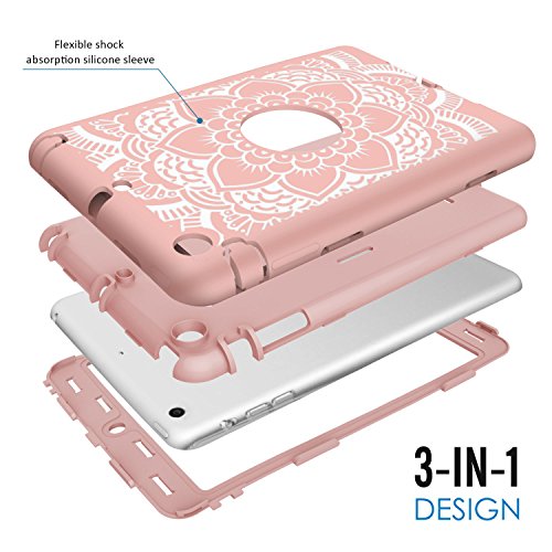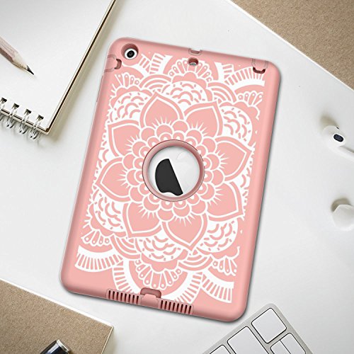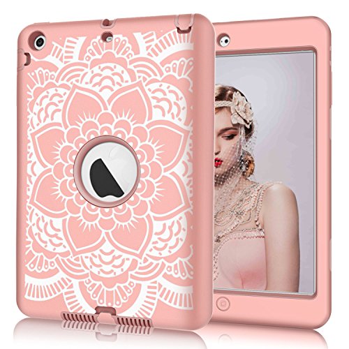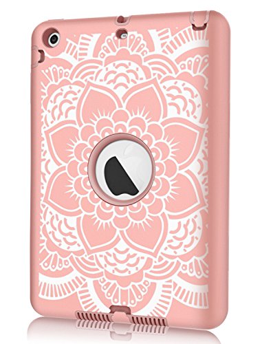 iPad mini/2/3 Case, Hocase Rugged Drop Resistant Dual Layer Hard Rubber Protective Case Cover for Apple iPad mini 1st/2nd/3rd gen - Rose Gold Flower