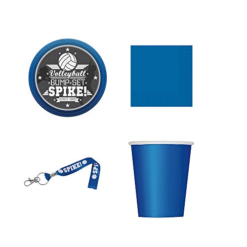 Volleyball Party Supply Pack for 8 Guests Includes Plates Napkins Cups and Keepsake Lanyard