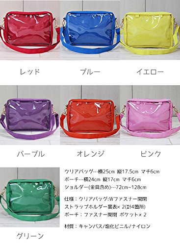-. Feature : クリアバッグ…横25cm 縦17.5cm マチ6cm ポーチ…横24cm 縦17cm マチ6cm ショルダー(金具含め)…72cm~128cm / 仕様:クリアバッグ:Wファスナー開閉 ストラップホルダー裏表×2(計4箇所) ポーチ:ファスナー開閉 ポケット×2 / 材質:キャンバス/塩化ビニル/ナイロン / ※素材の特性上、おり傷がみられますが不良品では御座いません。 上記理由では返品交換をお断りさせて頂いておりますので、予めご了承の上お買い求め頂けます様お願いいたします。