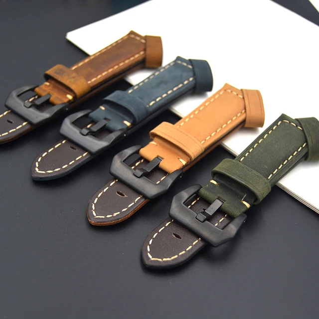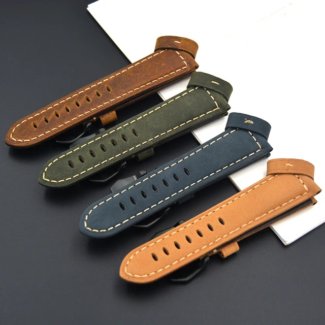 | [해외]빠른 배달 송아지 가죽 정품 가죽 시계 스트랩 22 미리메터 24 미리메터 고급 패션 스트랩 블루 그린 브라운 Panerai PAM 시계 밴드 |