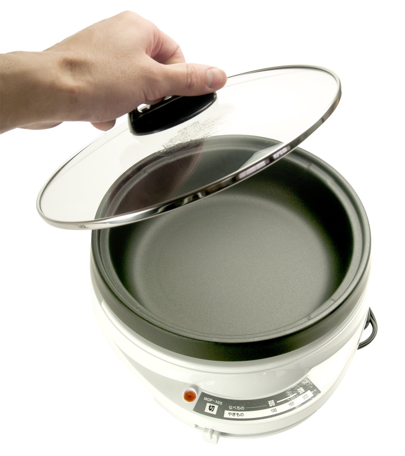 ● Product Specifications ● Material · Body: Heat resistant polypropylene · Lid: Tempered glass · Grill pan: Aluminum (fluoroplastic processing) · Grilled plate · Takoyaki plate: Aluminum die-casting (fluororesin processing) ● JET certified product ● Power consumption: