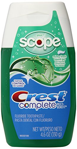 Product Description Protect cavities with the power of Crest Complete Multi-Benefit and get fresh breath with a blast of Scope, all in a compact, refreshing consistency of a liquid-gel toothpaste. 0