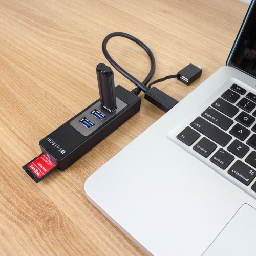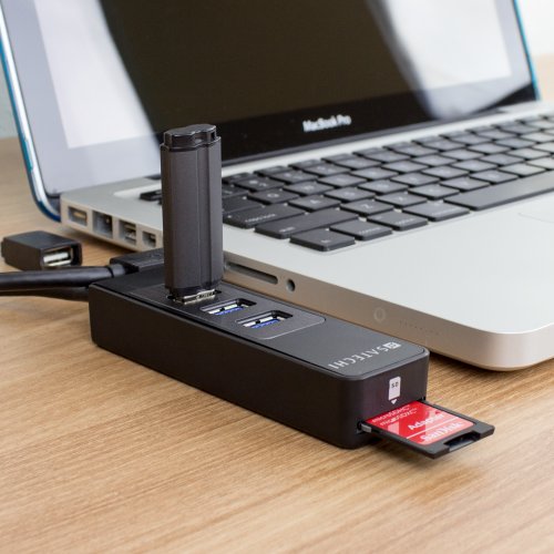 -. Feature : 4-Port USB 3.0 Hub at 5.0Gbps - backwards Compatible with USB 2.0 and 1.1 devices / Supports Windows 8/7/Vista/XP/2003/2000/ME, Mac OS X (latest updates from Apple required) / Plug and play - does not require any software, drivers, or complicated installation process. / The connection cable is attached to the hub -no need to worry about leaving it behind or losing it. / Bus Powered - does not require an AC adapter - compatible with Microsoft Surface, Ultrabooks and MacBook Air