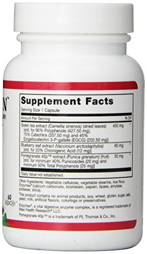 Pome-Green contains a super potent standardized extract of green tea (450 mg), which contains 95% Polyphenols, and 40% epigallocatechin-3 P-gallate (EGCG). Much of the research has been done with EGCG, one of the main constituents in Green Tea, and it appears to have the greatest antioxidant activity of all the green tea catechins.