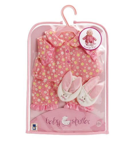 - Feature : From the Multiple Award Winning Baby Stella Collection of soft nurturing dolls, baby doll outfits, and baby doll accessories / Three piece ensemble includes an ultra-soft, flannel-like pajama top with matching bottom, and cute, embroidered bunny slippers / Goodnight Pajama Set will fit any Baby Stella Doll / Baby Stella fashions are all packaged with hangars and are easy for little hands to change with Velcro-like closures / Doll sold separately