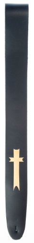 -. Feature : Cross design / Made from high-quality black leather / Provides maximum comfort for standing situations / Adjustable from 44.5 to 53" long / A great gift idea for any guitar player