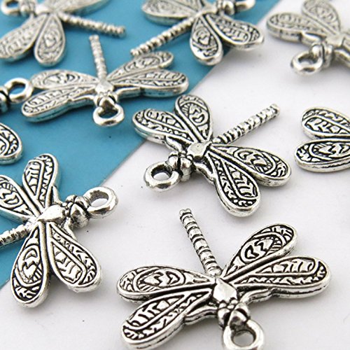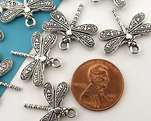 BULK 20 Antique Silver Dragonfly Charms 20 x 21mm (NS683)