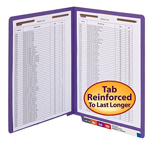 Smead WaterShed/CutLess End Tab Fastener Folder, Reinforced Straight-Cut Tab, Two Fasteners, Letter Size, Purple, 50 per Box (25550)