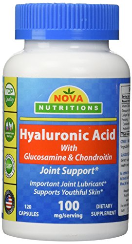-. Binding : Health and Beauty -. Brand : Nova Nutritions -. EAN : 0732363270355 -. Feature : Provides the body with the raw materials needed to support joint and connective tissue health.* / Helps promote cellular renewal and structure.* / Supports joints, skin and all connective tissues.* / Lubricates & Cushions Joints* / Smoothes Premature Lines/Wrinkles* -. IsAdultProduct : 0 -. Label : Nova Nutritions -. LegalDisclaimer : *These statements have not been evaluated by the Food and Drug Administration. This product is not intended to diagnose, treat, cure or prevent any disease. -. Manufacturer : Nova Nutritions -. ProductGroup : Health and Beauty -. ProductTypeName : HEALTH_PERSONAL_CARE -. Publisher : Nova Nutritions -. Studio : Nova Nutritions -. Title : Hyaluronic Acid 100 mg per serving 120 Capsules by Nova Nutritions -. UPC : 732363270355