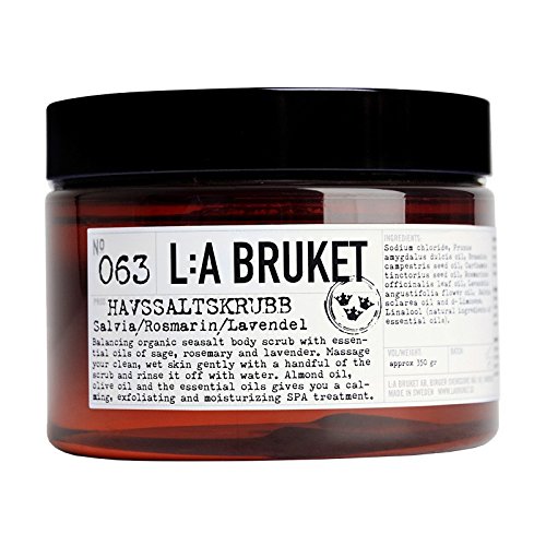 -. Binding : Misc. -. Brand : L:A Bruket -. Feature : From L:A Bruket, Made in Sweden / Scented with Sage, Rosemary and Lavender / This lovely, organic salt scrub contains essential oils and sea salt / Calming and exfoliating, your skin will feel hydrated and moisturized after each use / 250ml -. PackageQuantity : 1 -. ProductGroup : Beauty -. ProductTypeName : BEAUTY -. Title : No. 063 Sage/Rosemary/Lavender Salt Scrub 250 ml by L:A Bruket