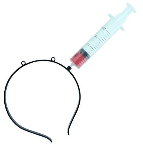 -. Feature : Halloween Party Cosplay Realistic Cleaver,Bayonet,Hatchet,Syringe Thru Head; / Perfect Halloween Party Supplies,Add Horrifying Atmosphere; / Made of high quality plastic,safety,soft and no hadness;Just wear it on your head; / Size reference:Cleaver length 26cm,Bayonet Length 30cm,Hatchet Length 26cm,Syringe Length 14cm; / Package Include:1pcs halloween cosplay headband;