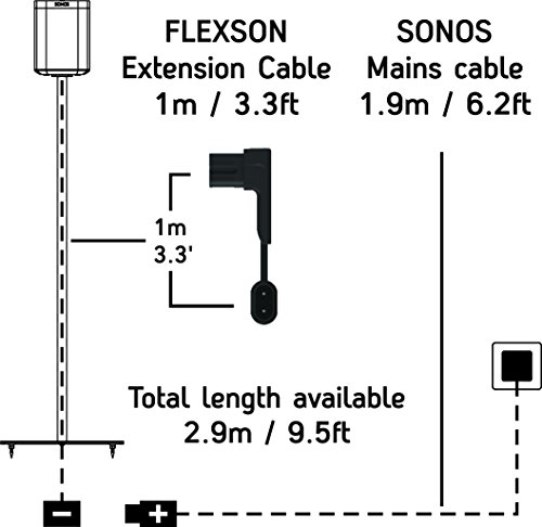 FLEXSON FLXP1X1M1021US 1M Right-Angled Extension Cable for Sonos Play:1, Black