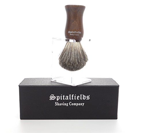 Spitalfields Shaving Company 100% Pure Badger Bristle with Faux Ebony Beechwood Handle Shaving Brush and FREE Acrylic Stand - Columbia Road