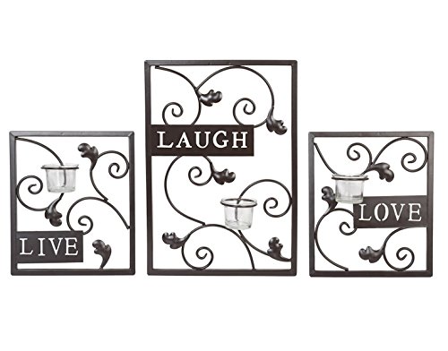 Hosley Set of Three Dark Brown Iron T-Lite Wall Sconce - Laugh, Love, Live; Hand made by Artisans. Ideal Gift for Wedding, Spa, Aromatherapy, Tea light Votive Candle Gardens