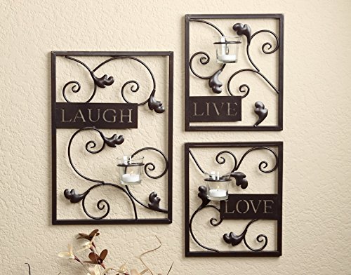 - USES: These are perfect for adding a decorative touch to any room's decor. These beautiful iron candle holder that's messages is too Live, Laugh, Love. Safe and sturdy, and holds three tea lights candles. Perfect for everyday use, wedding, events, aromatherapy,Spa, Reiki, Meditation