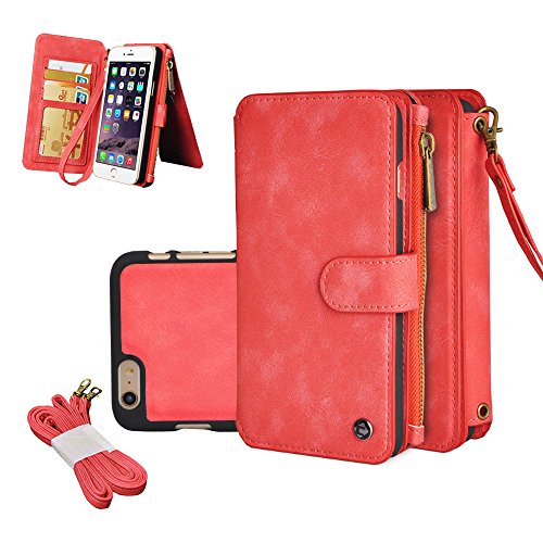 -. Feature : Specially Designed Wallet Case For iphone with Detachable Wrist Shoulder Strap / True Wallet Case: This wallet folio can store up to 14 credit cards including a ID Picture Slot. Smart Design allows you to easily flip the inner holder to access all your cards conveniently. / Made from 100% Premium PU Cowhide material design makes this wallet case comfortable to touch and grip. It is a multi-functional wallet with a roomy zipper cash storage enabling you to store all your valuables in one place.And with a detachable wrist strap easy for your carry. / Detachable Magnetic Hard Case: Extremely convenient, you can carry the case with the wallet folio or you can detach the case from the wallet if you want to carry only the hard case without the wallet. / Professional Design: Suitable for Men, Women, and Teens of all ages.