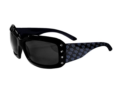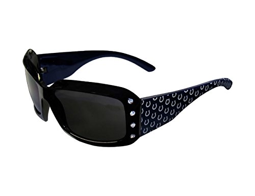 Our designer women's sunglasses have a repeating team logo design on the team colored arms and rhinestone accents. 100% UVA/UVB protection.