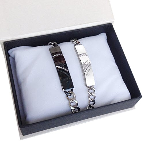 -. Title : ペア・ブレスレット CZインセットプレート 「Ture love」刻印 フラットアズキチェーン 金属アレルギー対応 肌に優しいサージカルステンレス316L素材 BGS718