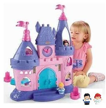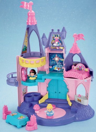 Studio : Mattel Publisher : Mattel Binding : Toy Product Description The Disney Princess Songs Palace by Little People is a detailed, interactive playset that brings Disney Princess characters to life in a special way! The palace features seven play areas (sitting room, kitchen, bedroom, balcony, attic, dressing room and magical dance floor). Place any Disney Princess figure on a special location on the magical palace dance floor and it recognizes that specific character by responding with her name, character phrases and a song from her movie. Dance floor also has room for two additional figures; slide the fountain lever back and forth to activate dancing action. Sitting room features a place for two figures to sit and look at the stars through the window. Kitchen features counter-top and sink with sound effects and movable table and chairs. Two figures can ride the elevator up to the balcony area or stop off in the dressing room to get ready for the ball. Comes with Cinderella and Snow White figures along with bonus Belle and Prince Adam in adorable Little People styling. 0