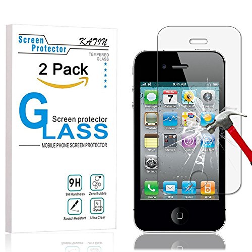 -. Title : iPhone 4S Screen Protector - KATIN [2-Pack] Apple iPhone 4 , iPhone 4S Premium Tempered Glass 9H Hardness , Anti-FingerP.R.Int , Bubble Free with Lifetime Replacement Warranty