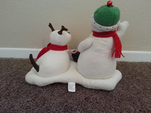 { This measures 11" wide X 6" deep X 11" tall. This happy couple is singing " Jingle Bells " // Watch them sway and dancing as they alternating solo singing. They are soooooo adorably. The music is activated when the hand of the snowman is squeezed. There is also an on/off switch on the bottom * RARE ** HARD TO FIND * Takes ( 3 ) AA batteries // batteries NOT included}