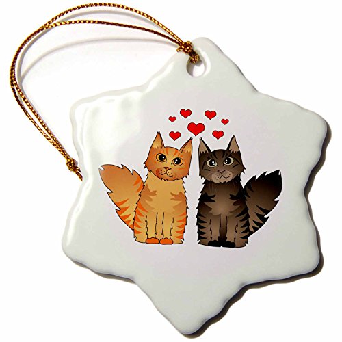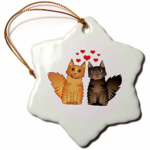 3dRose orn_35515_1 Cute Maine Coon Cats in Love Red and Brown Tabby Snowflake Porcelain Ornament, 3-Inch