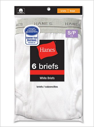 HANES BOYS BRIEF B252P6, 6-PACK, LARGE, WHITE