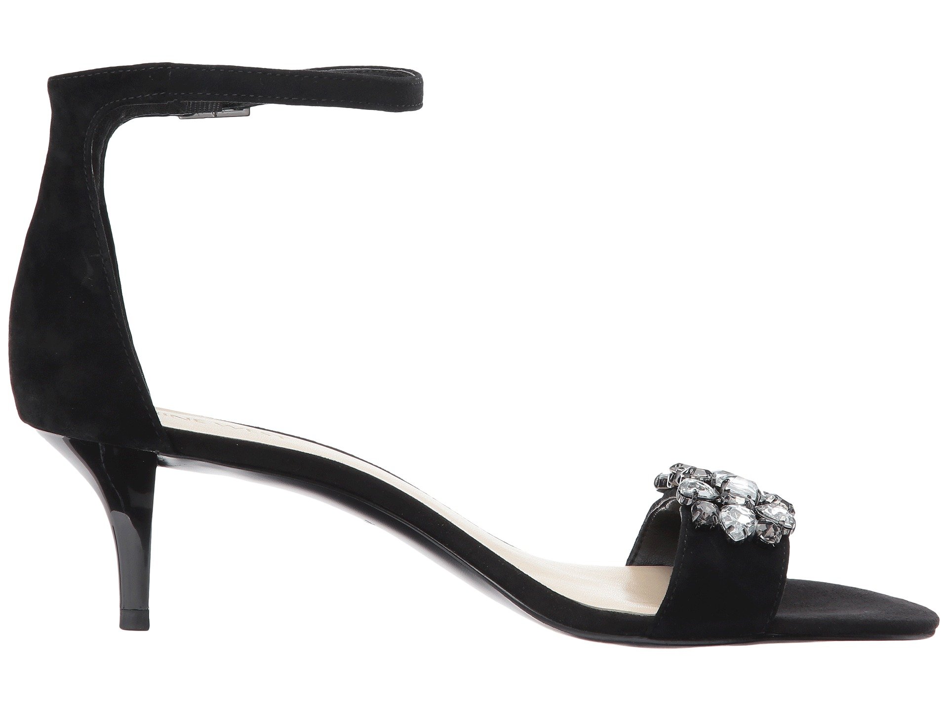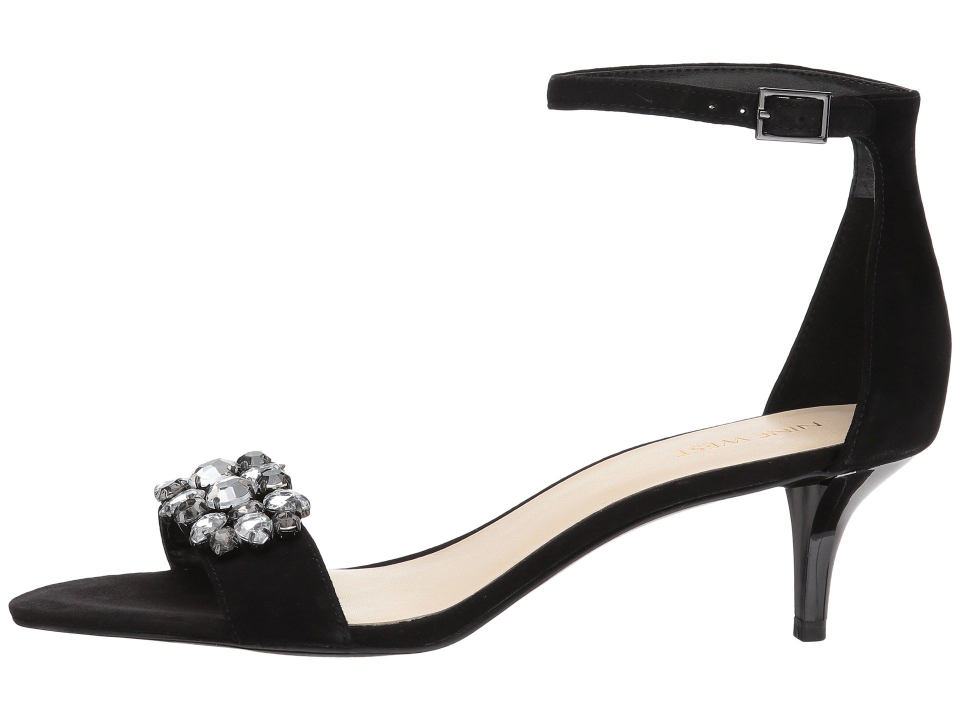 | Product Information SKU: #8969968Exude modern elegance with the Nine West? Lecia sandal.Suede or leather upper.Ankle strap with buckle closure.Open toe.Strap over vamp with jeweled embellishments.Man-made lining.Lightly padded footbed.Wrapped kitten heel.Man-made outsole.Imported.Product measurements were taken using size 9, width M. Please note that measurements may vary by size.Weight of footwear is based on a single item, not a pair.Measurements: Heel Height: 2 1?4 in Weight: 7 oz |