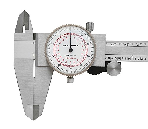 Accusize - 8" x 0.001"/200mm x 0.02mm, Inch/Metric Dual Needle Precision Dial Caliper Stainles Steel, In Fitted Case, #P920-S238