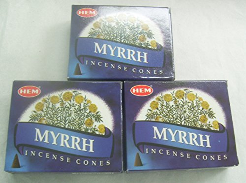 Hem Myrrh Incense Cones, 3 Packs of 10 Cones = 30 Cones