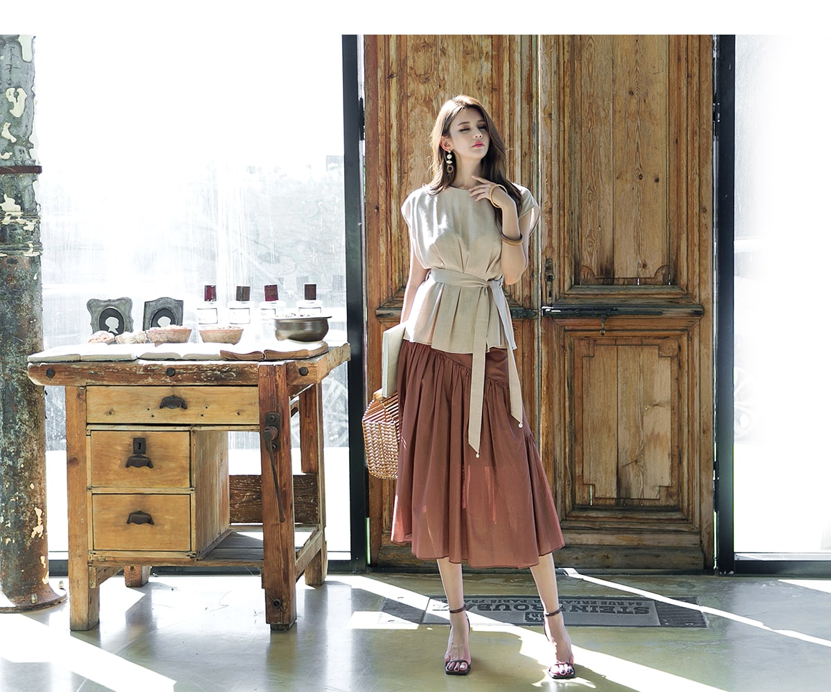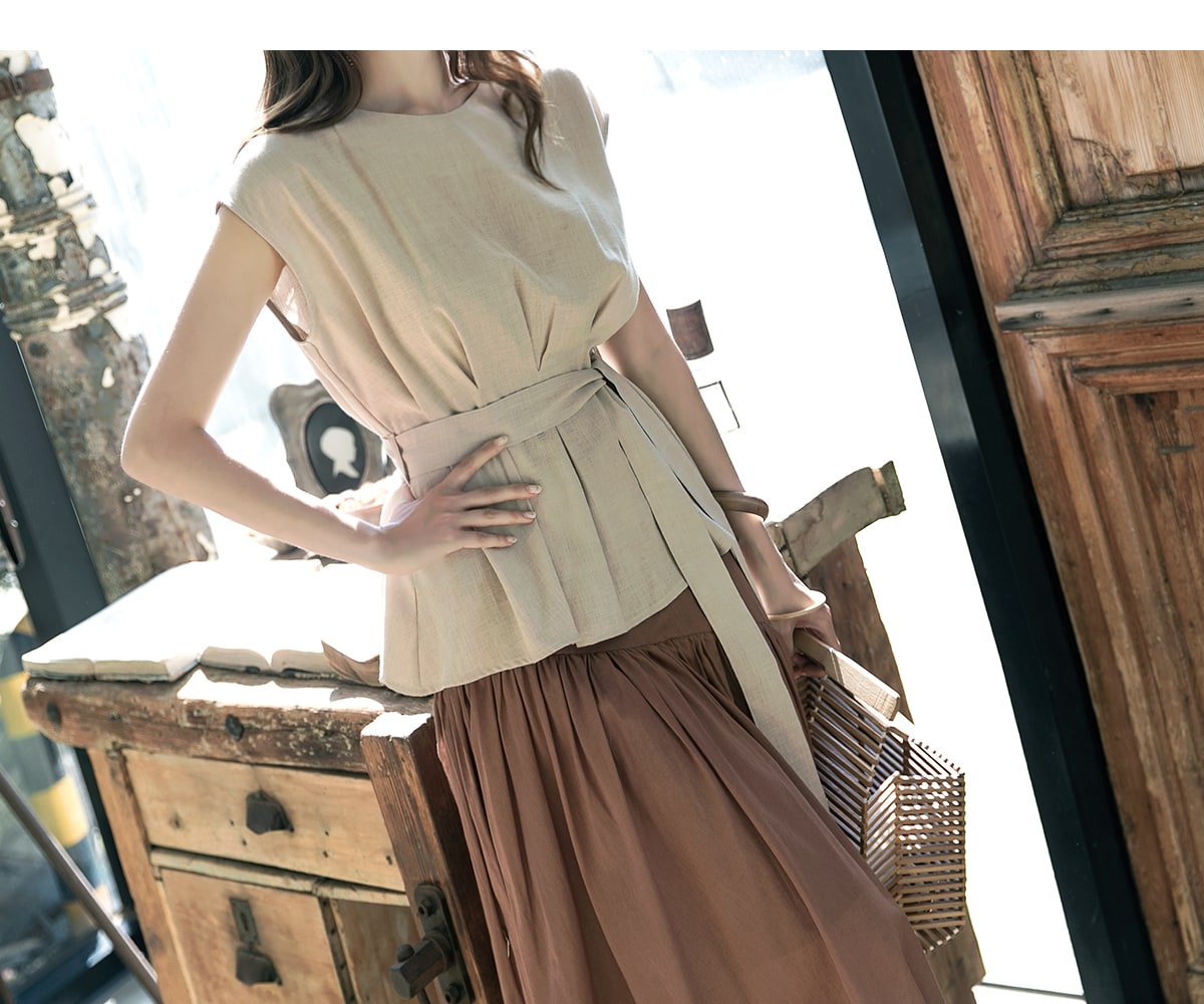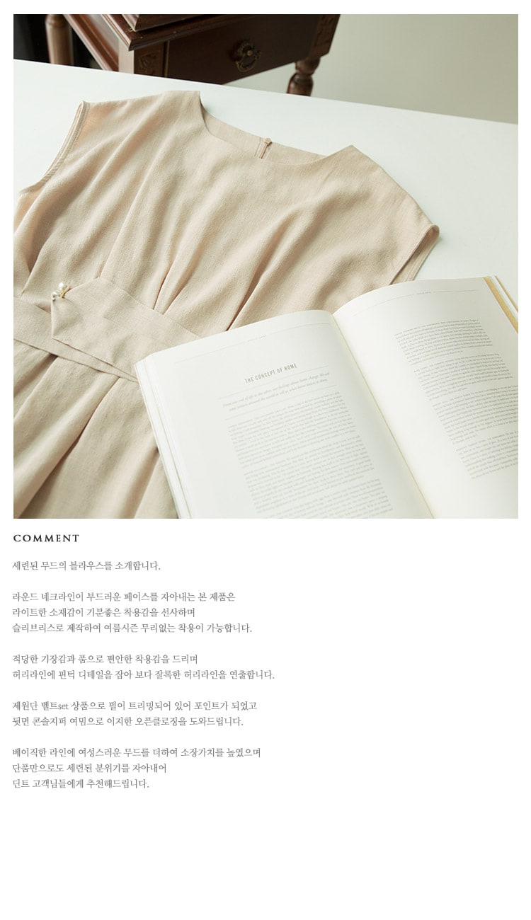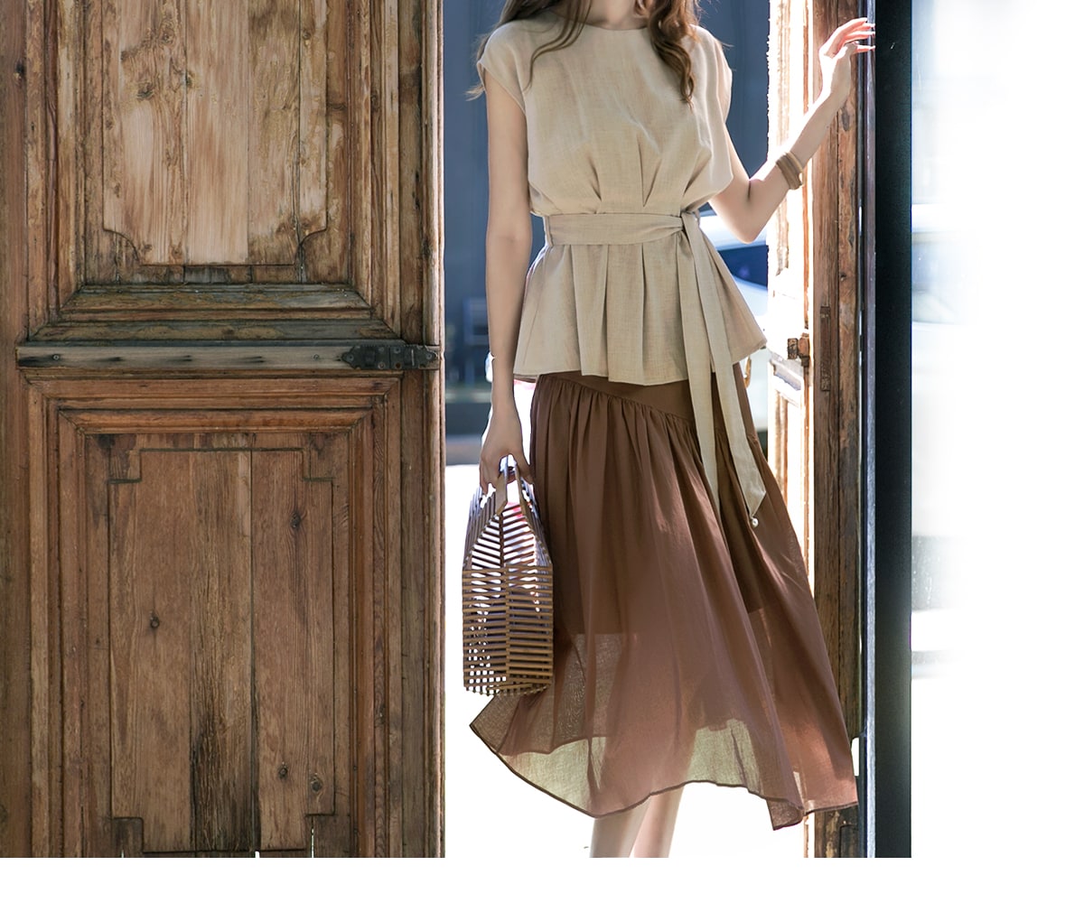 B2256 글랜 핀턱 블라우스(벨트set) Beige