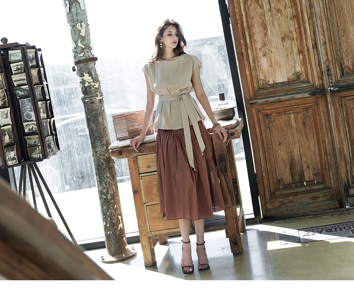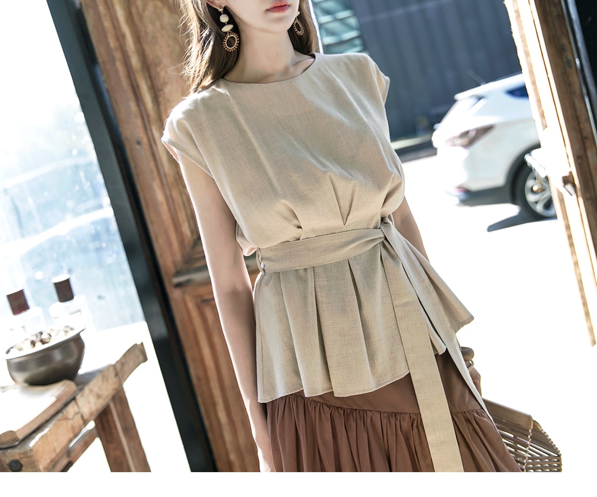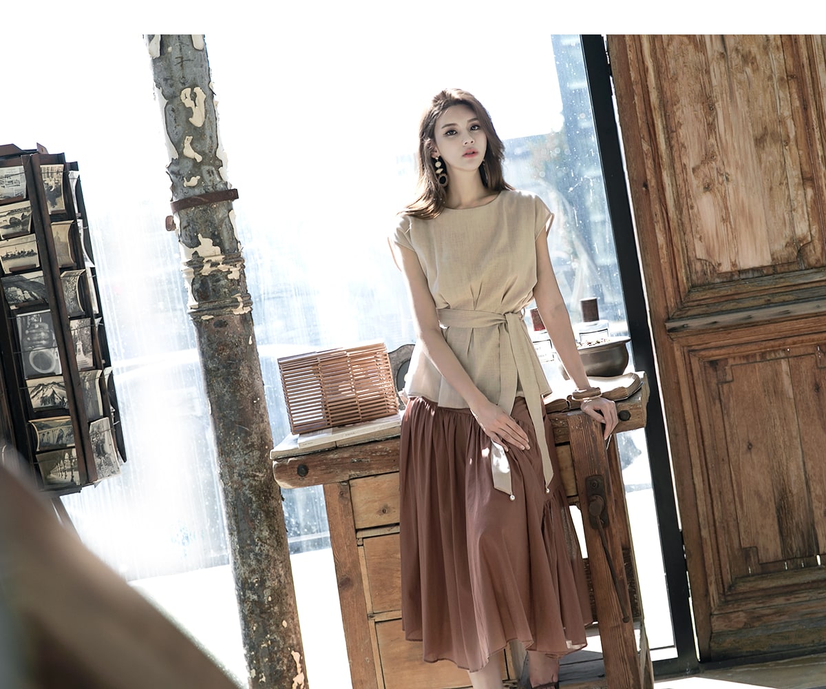 B2256 글랜 핀턱 블라우스(벨트set) Beige