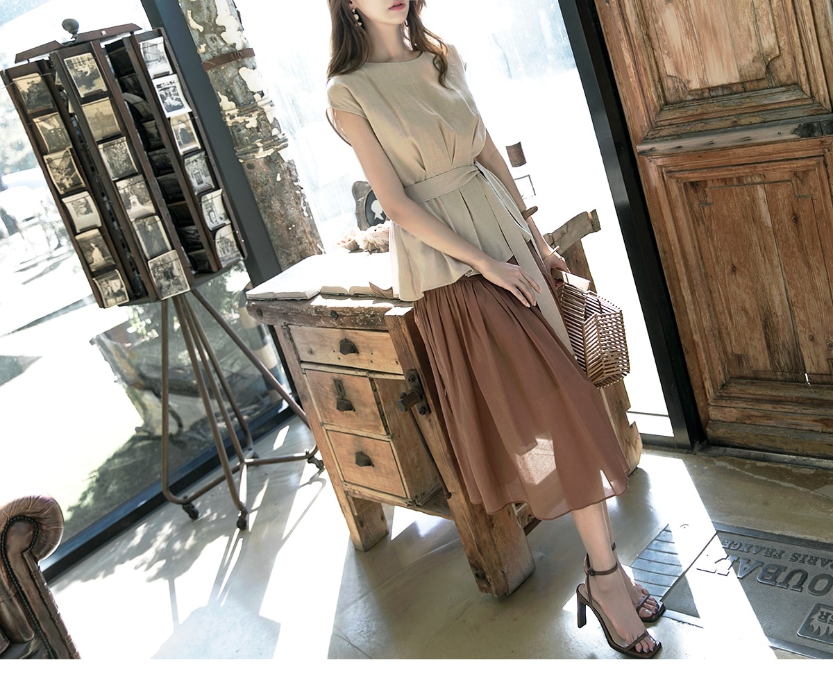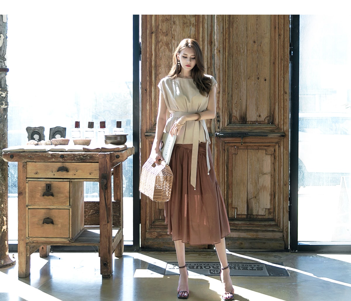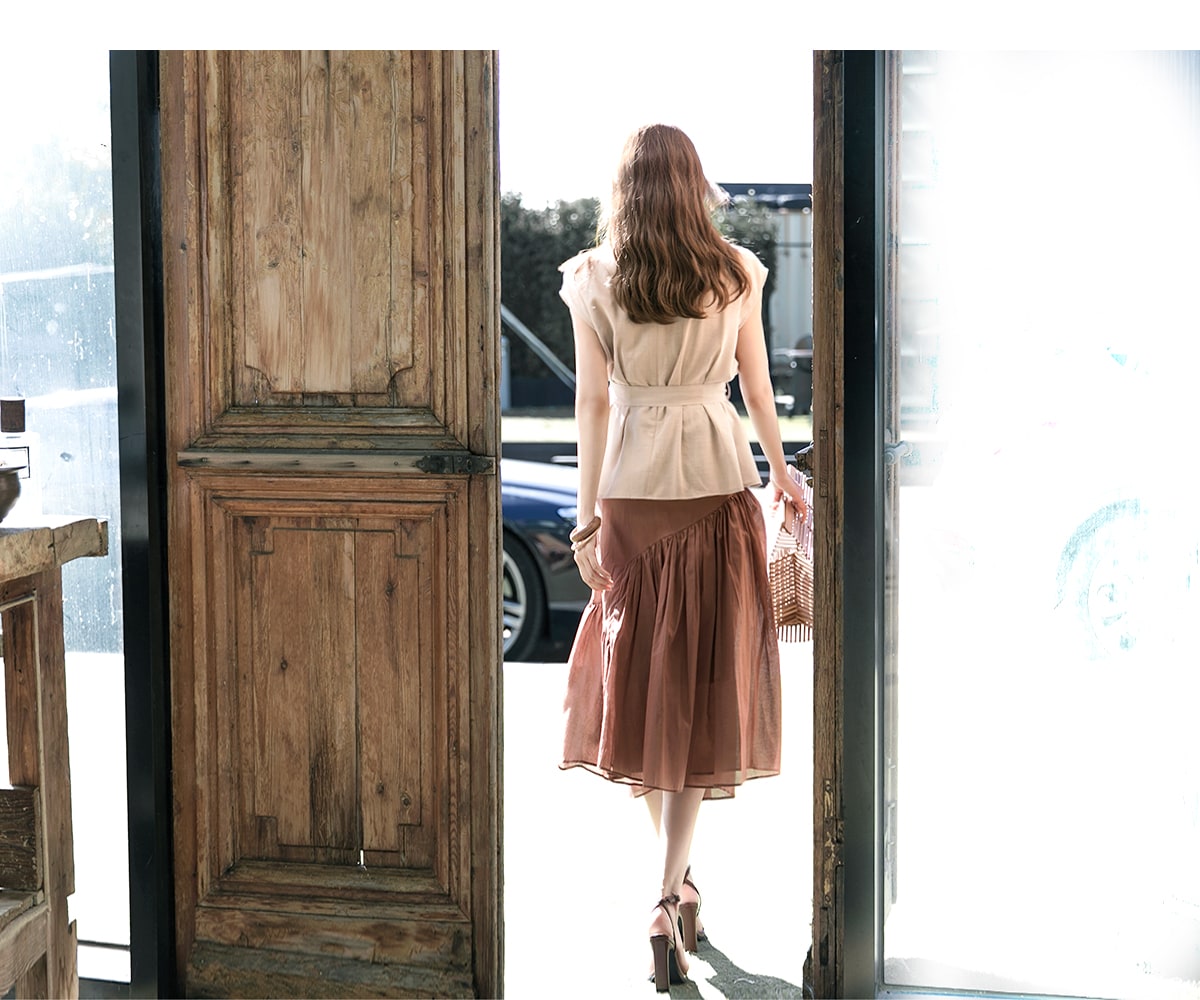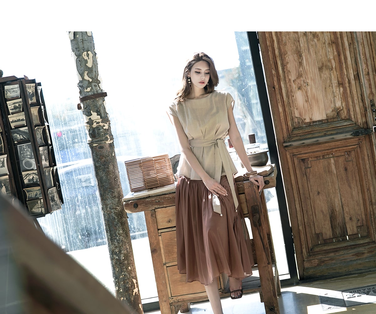 B2256 글랜 핀턱 블라우스(벨트set) Beige