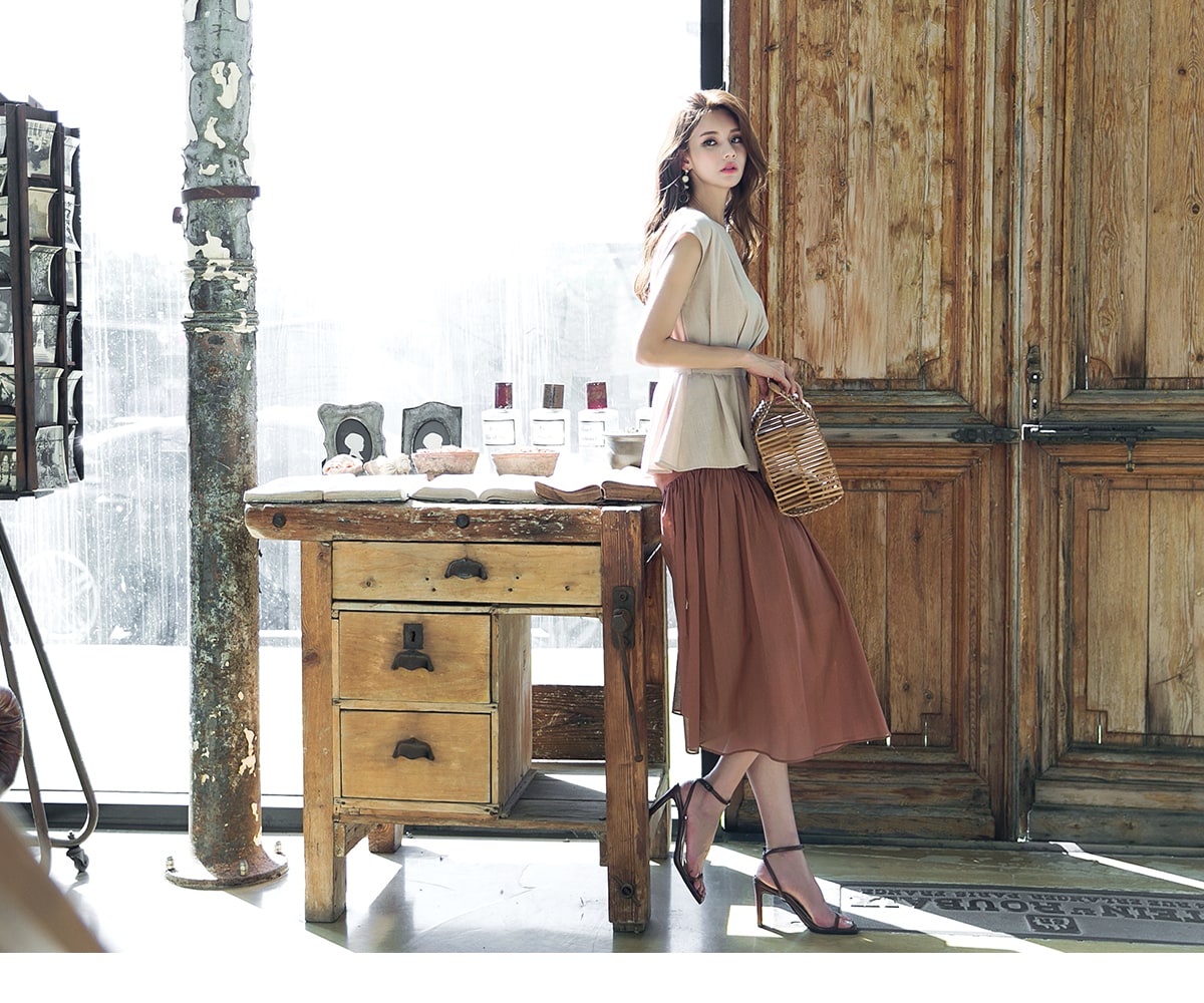 SK1749 로맨스 슬림 롱 스커트 Brown