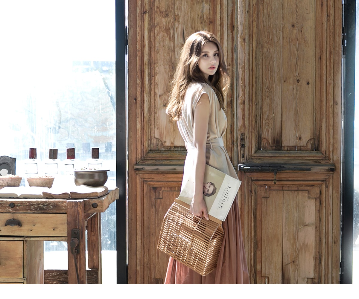 A-934 콜린 우드 버킷백 Beige