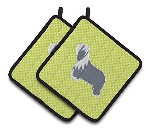 Caroline's Treasures Bearded Collie Checkerboard green Pair of Pot Holders BB3817PTHD, 7.5HX7.5W, Multicolor