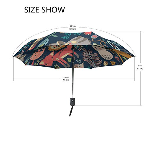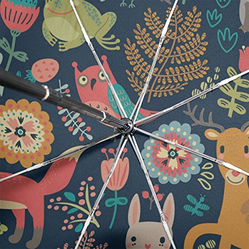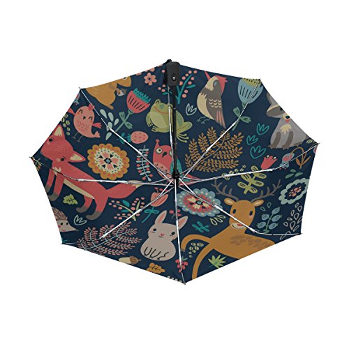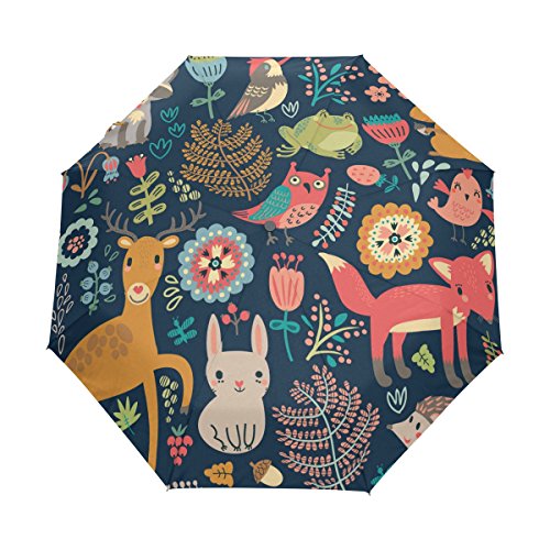 -. Title : WOZO Vintage Floral Print Fox Deer Bird Rabbit 3 Folds Auto Open Close Umbrella