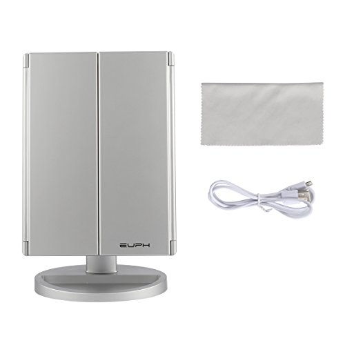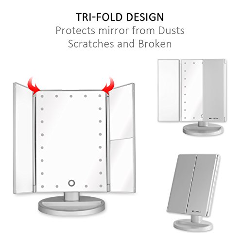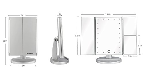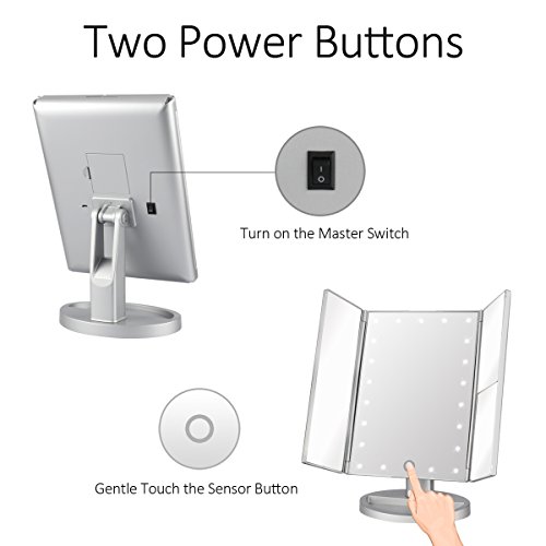Stunning Tri-Fold Design: 3 panels provides you wide-angle viewing, helps you make a more exquisite makeup from different angles. This makeup mirror is foldable, it ensures the safety of the mirror when you put it into bag or suitcase when you travel