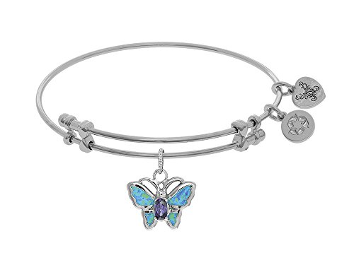 -. Title : Brass with White Finish Charm with Created Opal Butterfly On White Angelica Collection Bangle