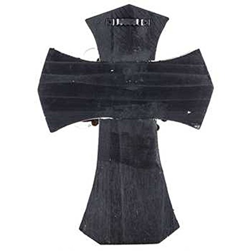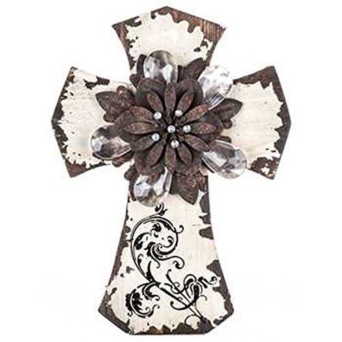 Distressed Wood Cross with Metal Flower & Crystal Center Home Wall Decor 8.5" x 6.5"