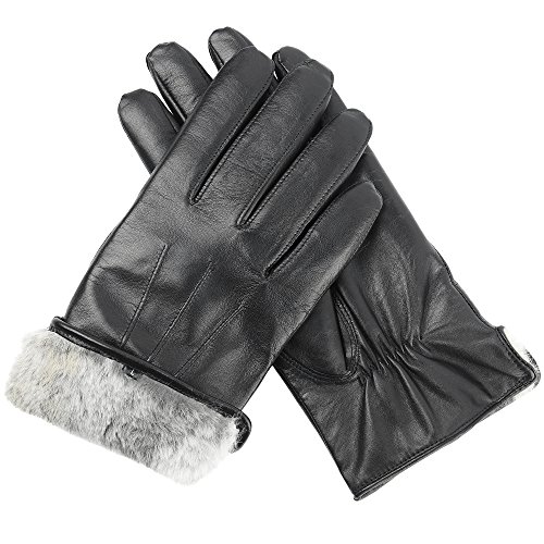 Crafted of luxe sheepskin leather fully lined with Rex Rabbit fur, our classic men's leather gloves offer superior quality at a very sensible price. Why pay a fortune for fine leather gloves? Your Candor and Class men's dress gloves give you the same high-end craftsmanship you'd get with those pricey brands... at much more reasonable cost. These Professional Men's Gloves Feature: * 100% genuine sheepskin leather, famous for buttery softness, rich texture fine, smooth grain * Full lining, right down to the fingertips: premium Rex Rabbit fur, extra-dense, velvety-soft undyed for natural purity (so there's no chemical smell) * Superior pique' stitching (8-9 stitches per inch)... for stronger, tighter seams elegant, tasteful style * Reinforced triple top accent stitching for that traditional dress-glove look * Convenient side vents for easier on-and-off