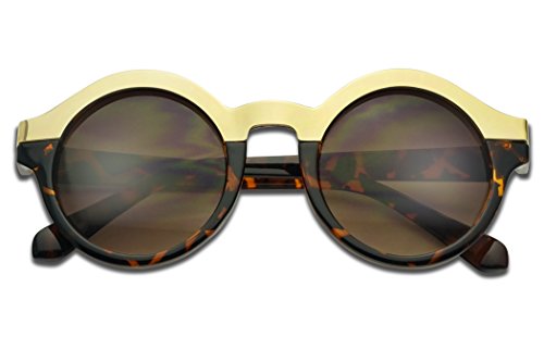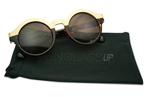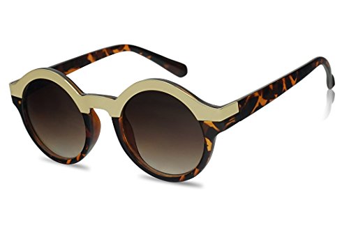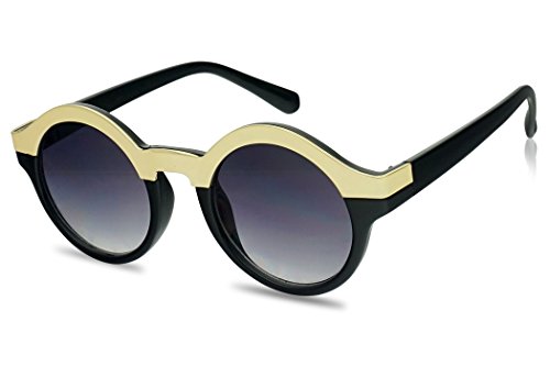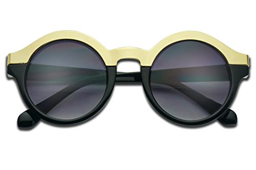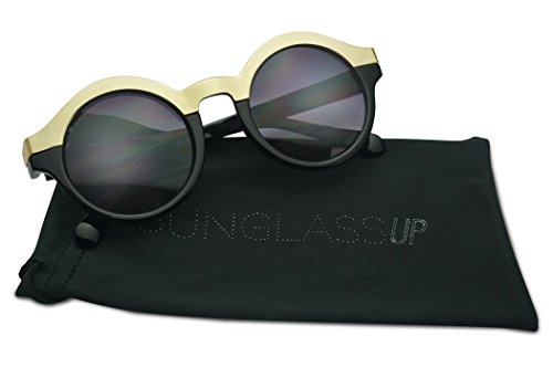 (SunglassUP)/Accessories/Eyewear/DIRECT FROM USA/Round Women's Two-Tone Gold Border Horn Rimmed Fashion Gradient Lens Sun Glasses